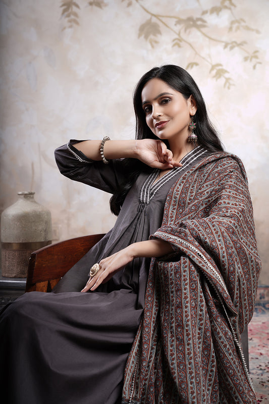 Apurva dark grey Trio cotton suit set
