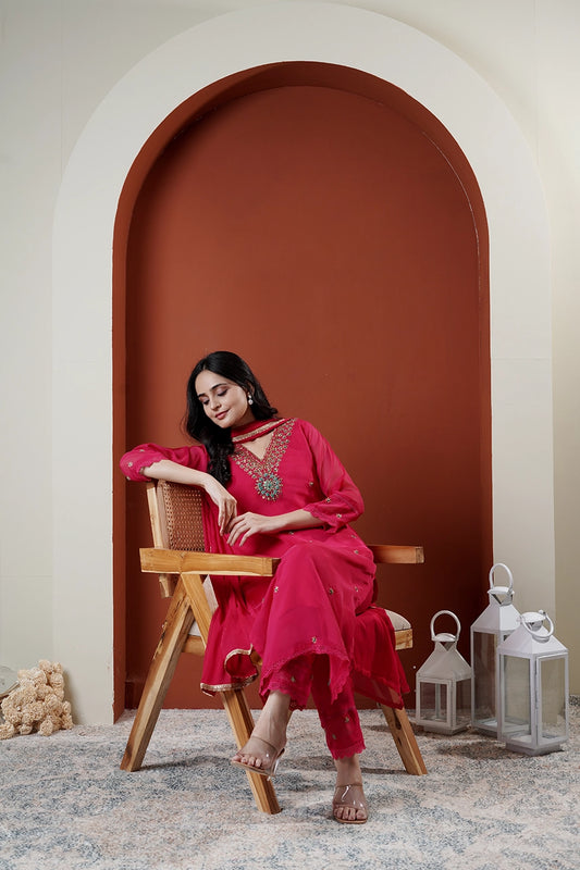 Iqra Rani Pink Suit Set of Three